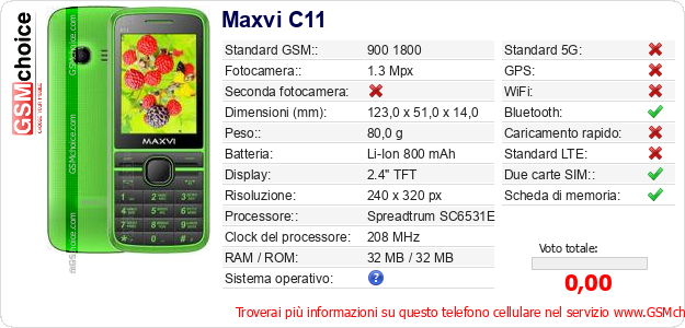 Dati del telefono cellulare Maxvi C11 sul tuo sito
