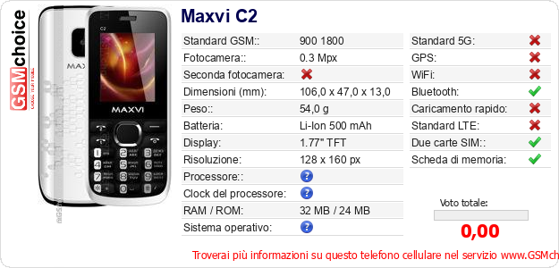 Dati del telefono cellulare Maxvi C2 sul tuo sito