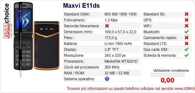 Dati del telefono cellulare Maxvi E11ds sul tuo sito