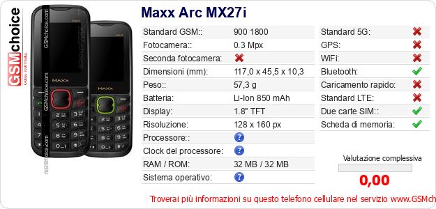 Dati del telefono cellulare Maxx Arc MX27i sul tuo sito