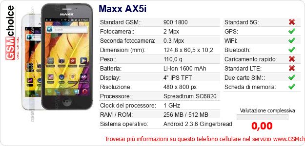 Dati del telefono cellulare Maxx AX5i sul tuo sito