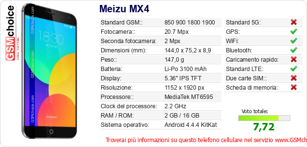 Dati del telefono cellulare Meizu MX4 sul tuo sito