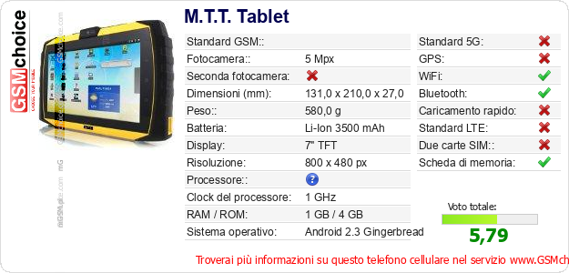 Dati del telefono cellulare M.T.T. Tablet sul tuo sito