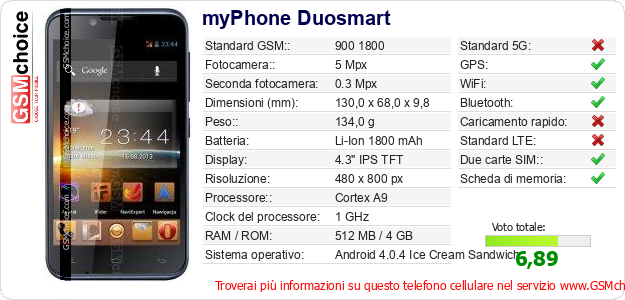 Dati del telefono cellulare myPhone Duosmart sul tuo sito