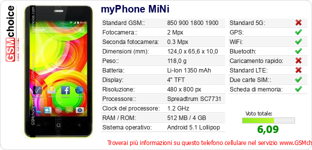 Dati del telefono cellulare myPhone MiNi sul tuo sito