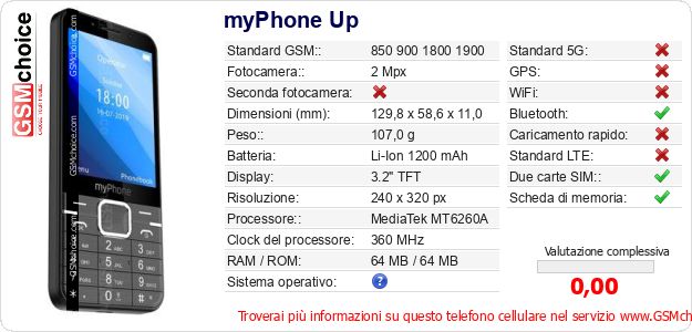 Dati del telefono cellulare myPhone Up sul tuo sito