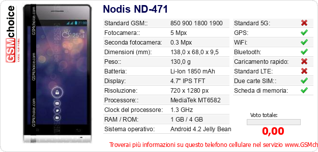 Dati del telefono cellulare Nodis ND-471 sul tuo sito