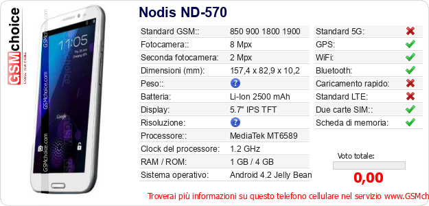 Dati del telefono cellulare Nodis ND-570 sul tuo sito