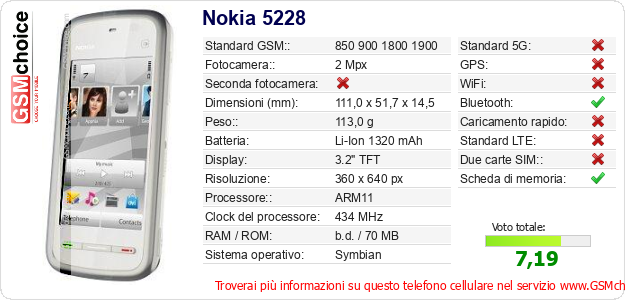Dati del telefono cellulare Nokia 5228 sul tuo sito
