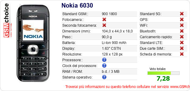 Dati del telefono cellulare Nokia 6030 sul tuo sito
