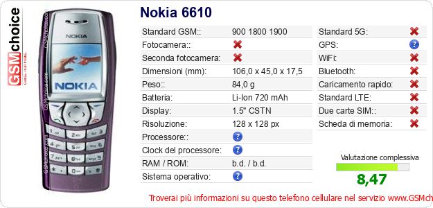 Dati del telefono cellulare Nokia 6610 sul tuo sito