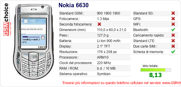 Dati del telefono cellulare Nokia 6630 sul tuo sito