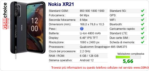 Dati del telefono cellulare Nokia XR21 sul tuo sito
