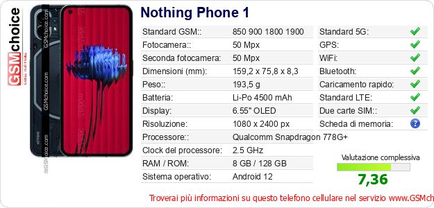 Dati del telefono cellulare Nothing Phone 1 sul tuo sito