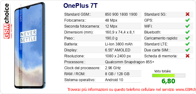 Dati del telefono cellulare OnePlus 7T sul tuo sito