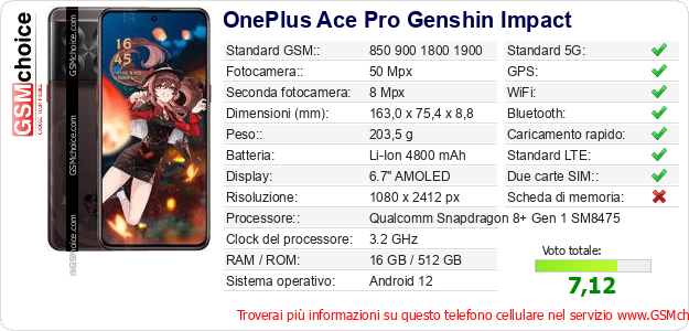 Dati del telefono cellulare OnePlus Ace Pro Genshin Impact sul tuo sito