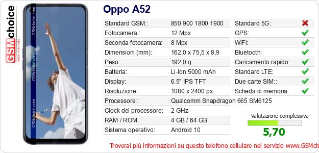 Dati del telefono cellulare Oppo A52 sul tuo sito