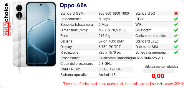 Dati del telefono cellulare Oppo A6s sul tuo sito