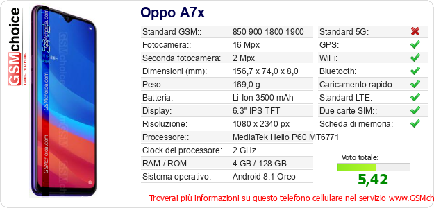 Dati del telefono cellulare Oppo A7x sul tuo sito