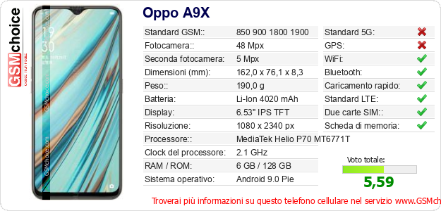 Dati del telefono cellulare Oppo A9X sul tuo sito