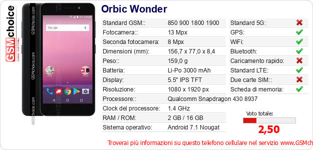 Dati del telefono cellulare Orbic Wonder sul tuo sito