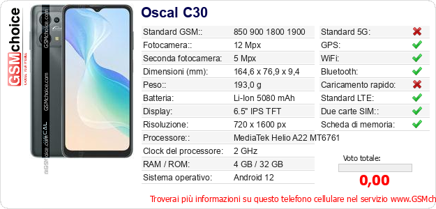 Dati del telefono cellulare Oscal C30 sul tuo sito
