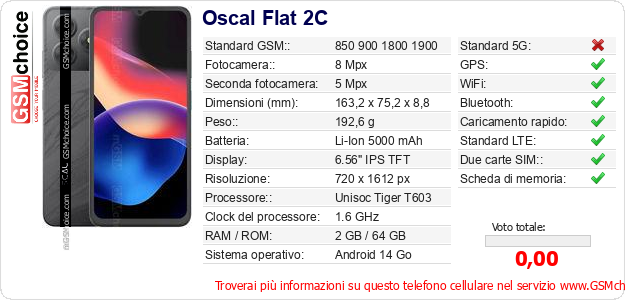 Dati del telefono cellulare Oscal Flat 2C sul tuo sito