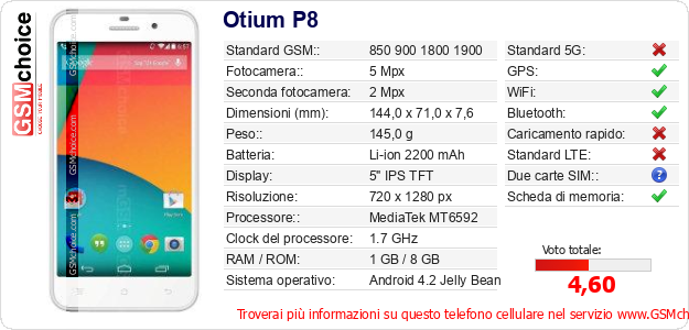 Dati del telefono cellulare Otium P8 sul tuo sito