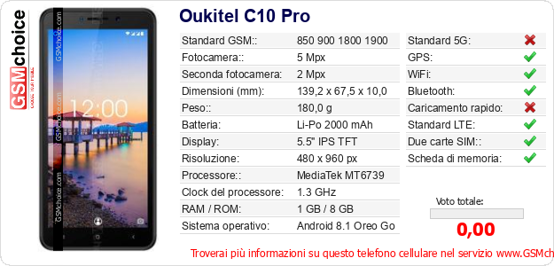 Dati del telefono cellulare Oukitel C10 Pro sul tuo sito
