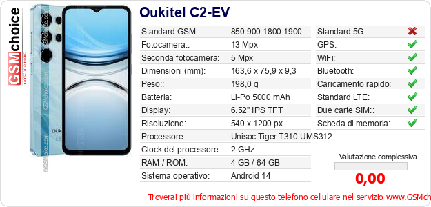 Dati del telefono cellulare Oukitel C2-EV sul tuo sito