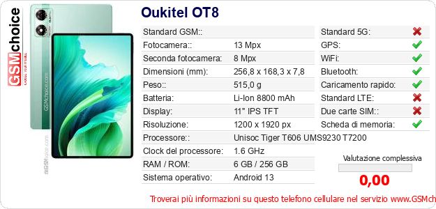 Dati del telefono cellulare Oukitel OT8 sul tuo sito