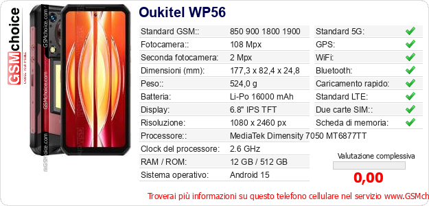 Dati del telefono cellulare Oukitel WP56 sul tuo sito