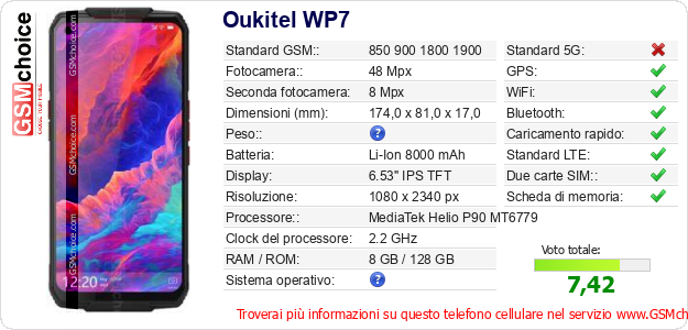 Dati del telefono cellulare Oukitel WP7 sul tuo sito