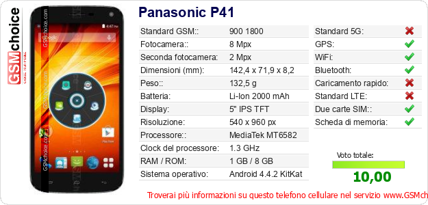 Dati del telefono cellulare Panasonic P41 sul tuo sito