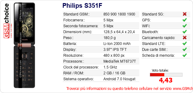 Dati del telefono cellulare Philips S351F sul tuo sito