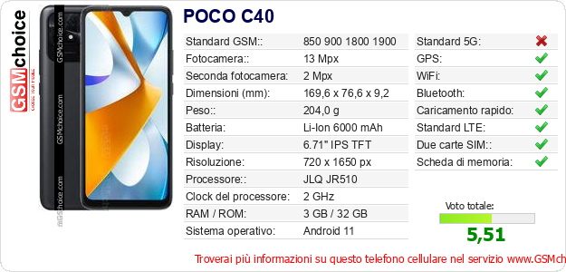Dati del telefono cellulare POCO C40 sul tuo sito