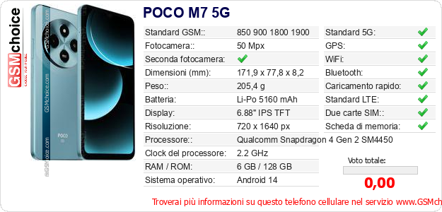 Dati del telefono cellulare POCO M7 5G sul tuo sito