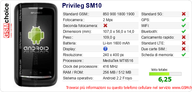 Dati del telefono cellulare Privileg SM10 sul tuo sito