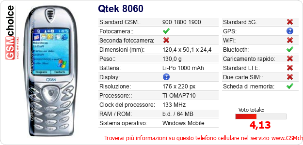Dati del telefono cellulare Qtek 8060 sul tuo sito