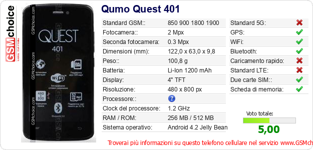 Dati del telefono cellulare Qumo Quest 401 sul tuo sito