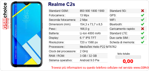 Dati del telefono cellulare Realme C2s sul tuo sito