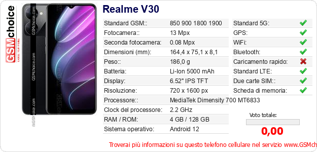 Dati del telefono cellulare Realme V30 sul tuo sito