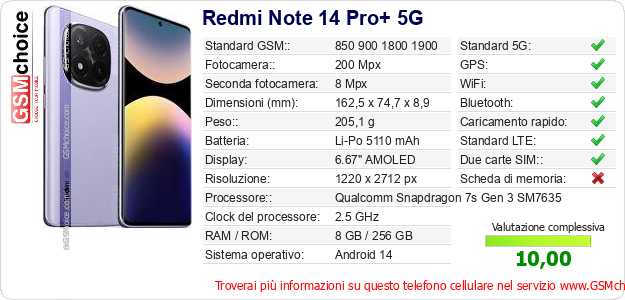 Dati del telefono cellulare Redmi Note 14 Pro+ 5G sul tuo sito