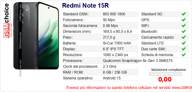 Dati del telefono cellulare Redmi Note 15R sul tuo sito