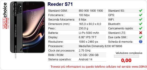 Dati del telefono cellulare Reeder S71 sul tuo sito