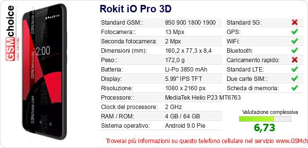Dati del telefono cellulare Rokit iO Pro 3D sul tuo sito