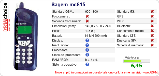Dati del telefono cellulare Sagem mc815 sul tuo sito