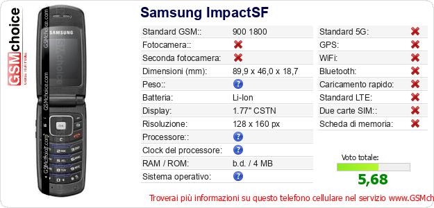 Dati del telefono cellulare Samsung ImpactSF sul tuo sito