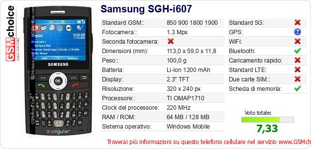 Dati del telefono cellulare Samsung SGH-i607 sul tuo sito