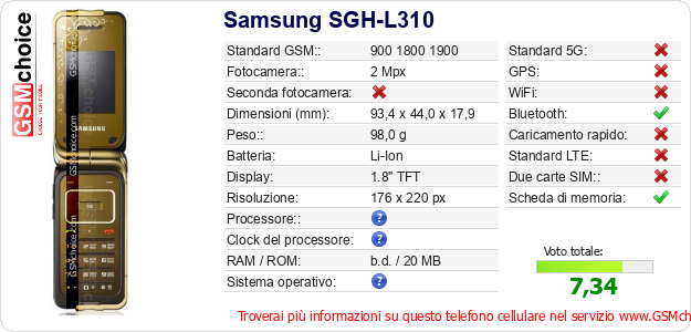 Dati del telefono cellulare Samsung SGH-L310 sul tuo sito